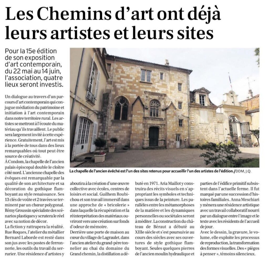 Tous les adhérents, sympathisants et partenaires des Chemins d’Art en Armagnac sont invités à participer à l’assemblée générale de l’association qui se déroulera le vendredi 6 février à 18h dans la maison des associations située route de Montréal à Condom.